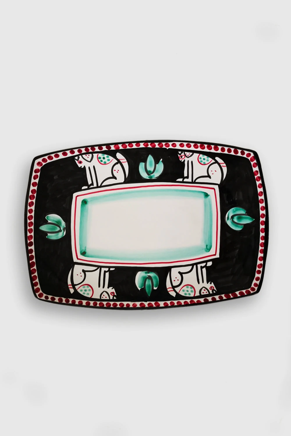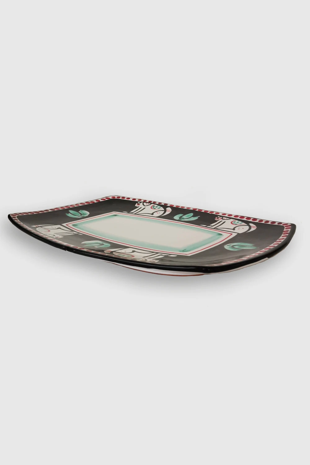 Assiette de service à Sushis avec motifs Chiens. Chaque pièce unique de notre Ceramica Assunta est fabriquée par des artisans italiens et décorée au pinceau sur la base de tons aquarellés et de thèmes bestiaires porte-bonheur.