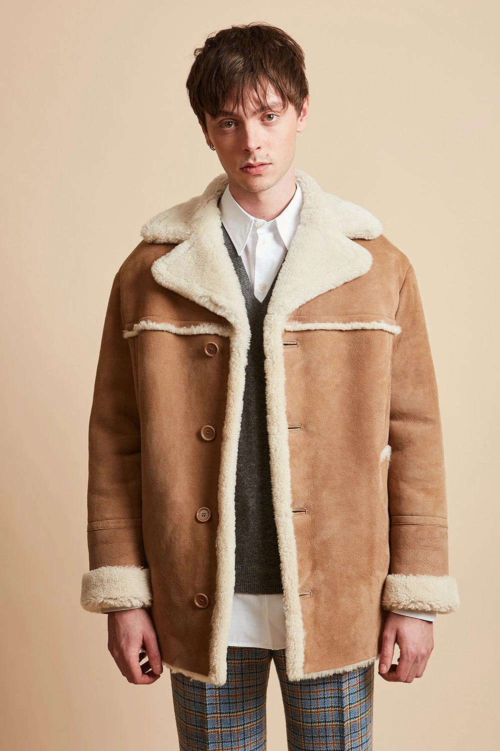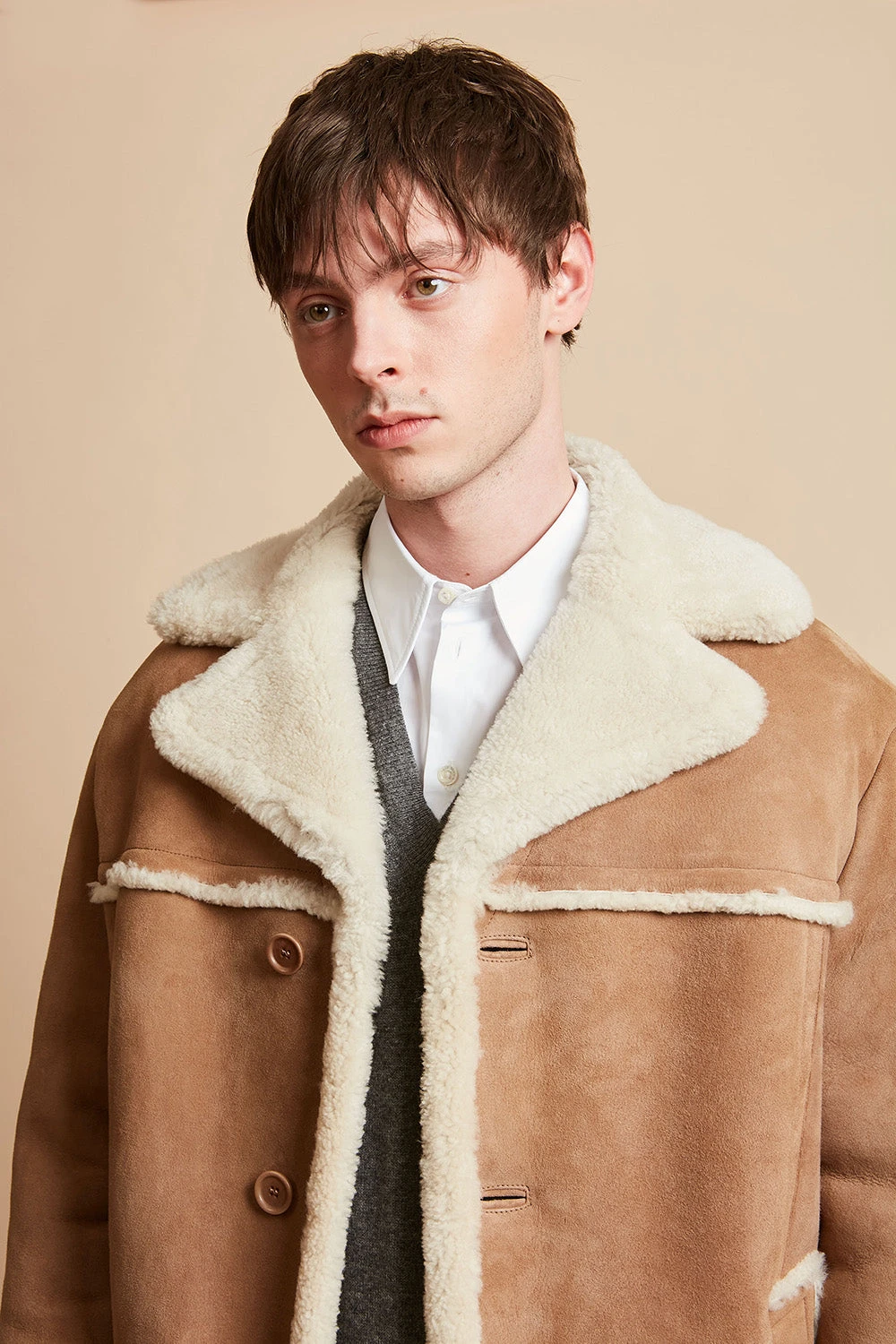 Véritable indispensable de l’hiver, le manteau MONTANA revisite les codes du caban classique en jouant avec les textures. Confectionné en peau d’agneau, il présente une coupe ample et un large col en mouton retourné. Il est également doté de rappels de cette matière sur les revers et sur les bas de manches. Le caban se ferme grâce à un boutonnage à l’avant.