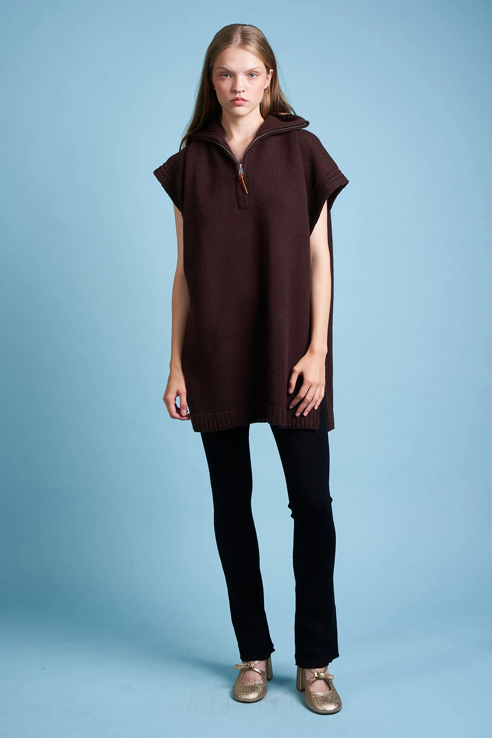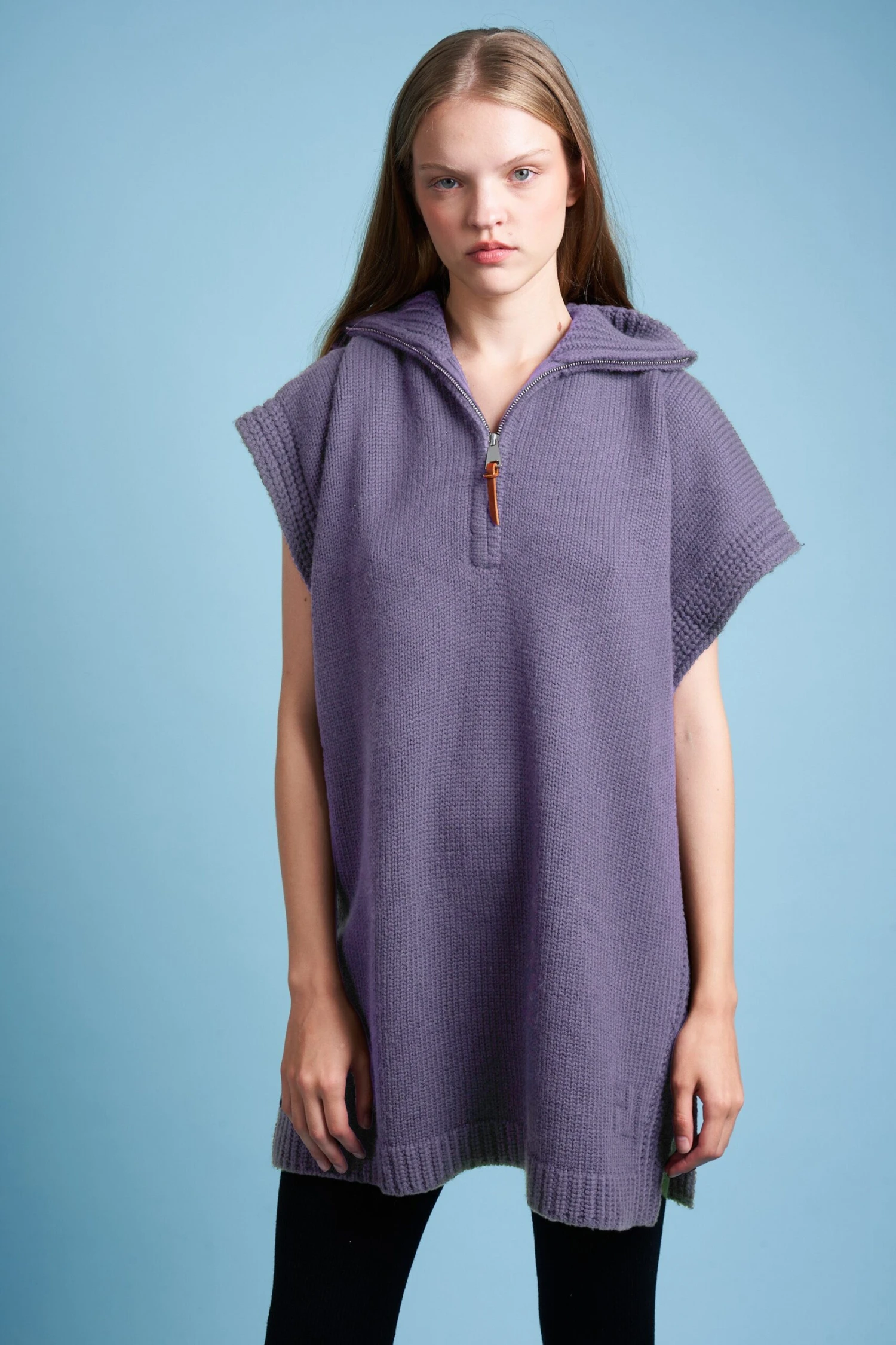 Complétez votre garde robe avec la cape en grosse maille de laine et cachemire HERO. Elle est composée d’un col camionneur en côte et d’un zip au milieu à l’avant. Elle est également dotée de fentes sur les côtés.