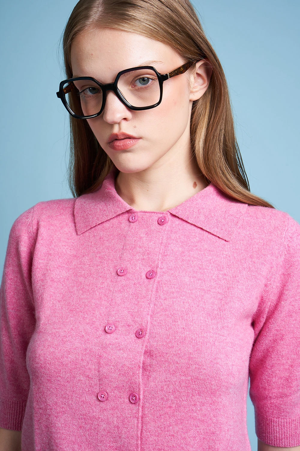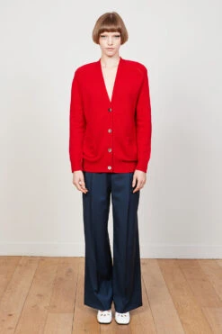 Complétez votre dressing avec le cardigan court en cachemire au col polo CALIN. Il dispose d’un double boutonnage avec des boutons en nacre et de manches longueur coude. La finition intérieure est réalisée en gros grain.