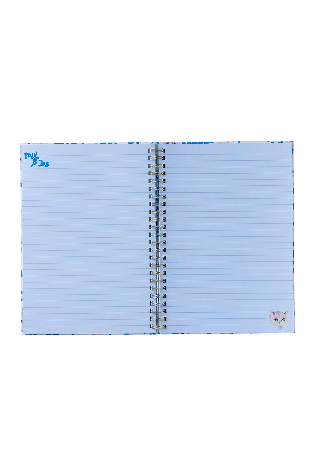 Carnet de notes à spirales format A5 avec motif Gipsy. Gipsy est l’un des chats de Sophie Mechaly, la créatrice de Paul & Joe. Le papier à l’intérieur est composée de lignes horizontales.