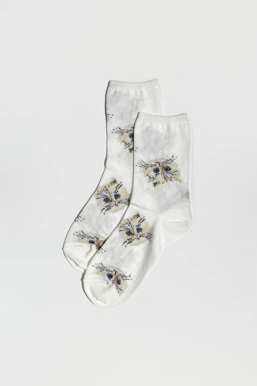 Chaussettes mi-hautes en coton et nylon imprimées tête de chat, motif emblématique de Paul & Joe. Ces chaussettes se porteront facilement avec une paire de baskets et ajouteront une touche de fantaisie à votre look.