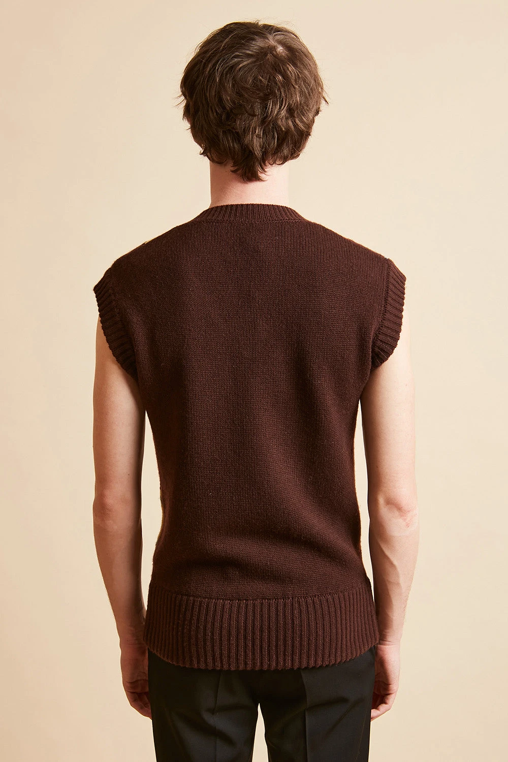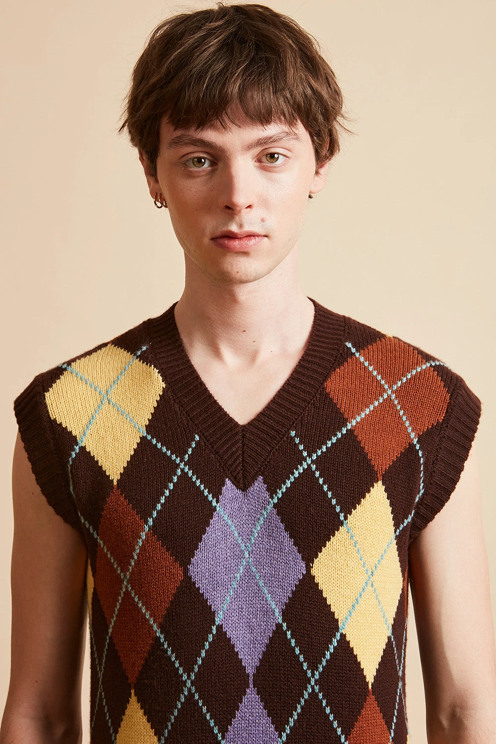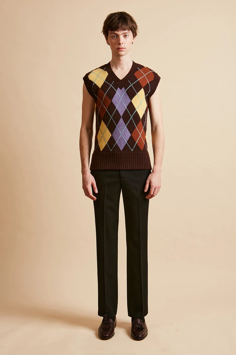Adoptez le débardeur en laine et cachemire aux motifs losanges en intarsia CHANDLER. Sa coupe est cintrée et son encolure est en V.