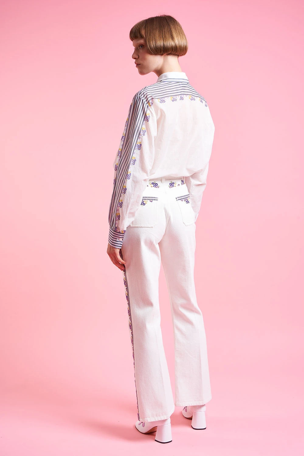 Jean coupe droite avec broderies placées sur les côtés WOOD.