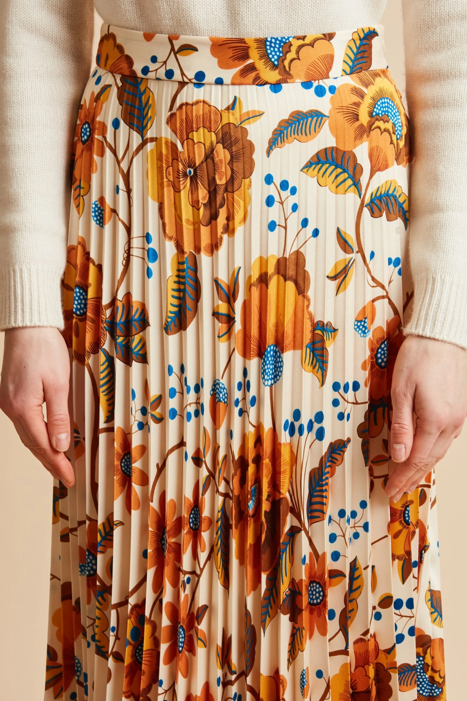 Osez l’imprimé floral avec la jupe plissée soleil en twill de polyester ALIZEE. De coupe taille haute et de longueur cheville elle saura vous mettre en avant. Elle dispose d’une ceinture avec zip invisible sur le côté et d’un ourlet au point bourdon.