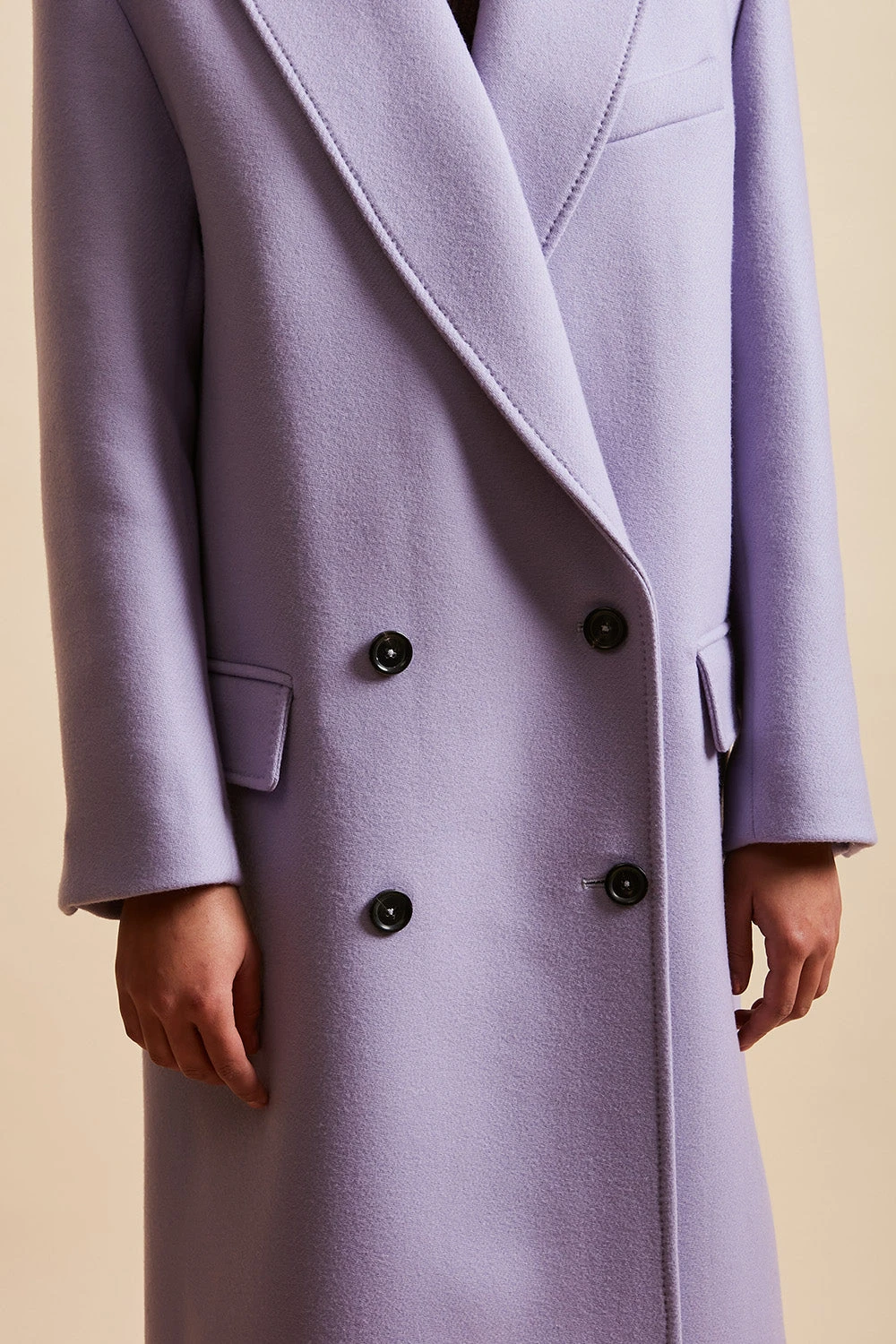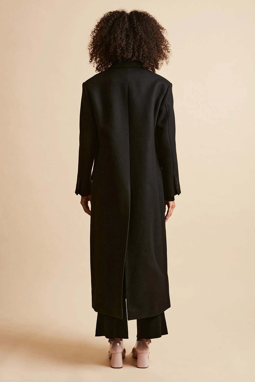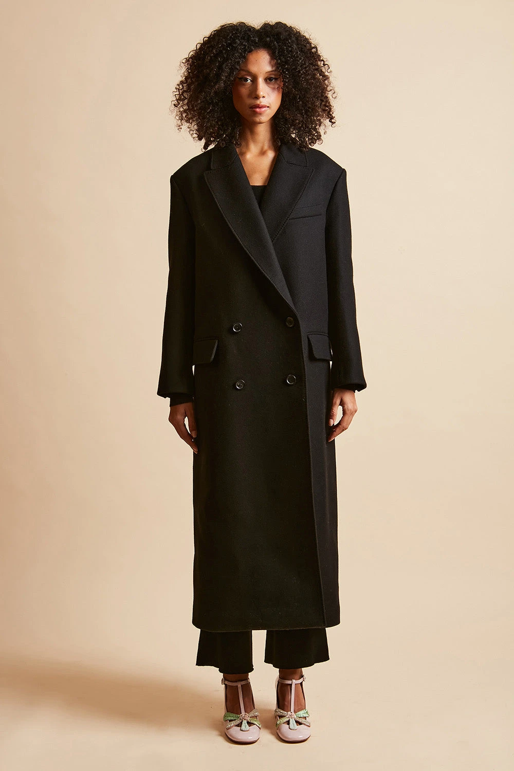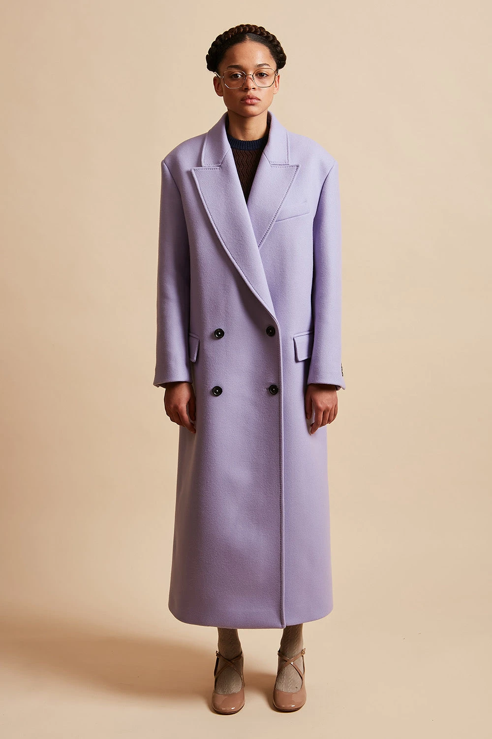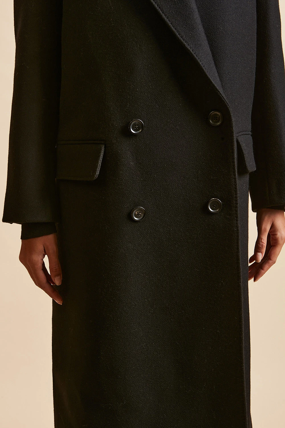 Le manteau ASTRE est coupé dans un mélange de drap de laine et cachemire. Entièrement fabriqué en France, sa coupe oversize vous permettra de le porter aussi bien fermé que ouvert sur un tailleur ou un jean. Il dispose d’un col large et d’un revers surpiqués. Son double boutonnage et sa longueur parfaite à mi mollet vous protègera du froid avec style.