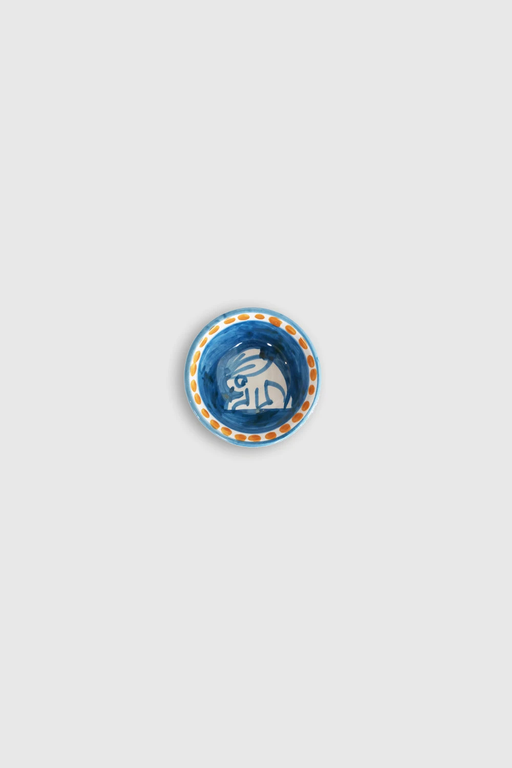 Mini bol à tapas avec motif Lapin. Chaque pièce unique de céramique est fabriquée par des artisans italiens à Positano et décorée au pinceau sur la base de tons aquarellés et de thèmes bestiaires porte-bonheur.