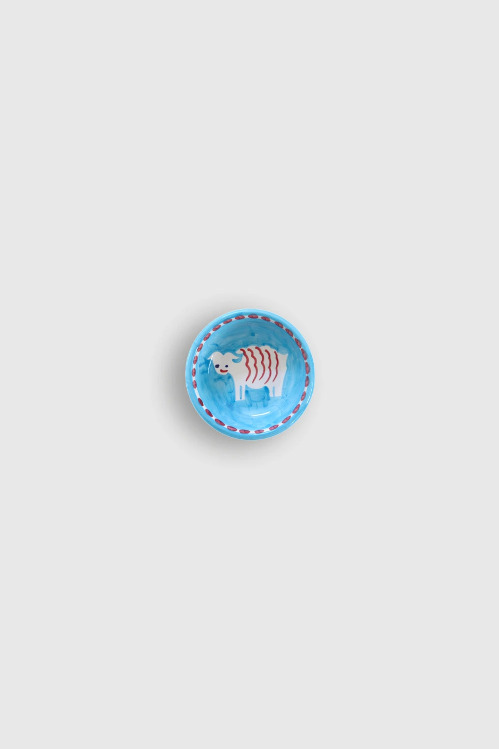 Mini bol à tapas avec motifs Moutons. Chaque pièce unique de céramique est fabriquée par des artisans italiens à Positano et décorée au pinceau sur la base de tons aquarellés et de thèmes bestiaires porte-bonheur.