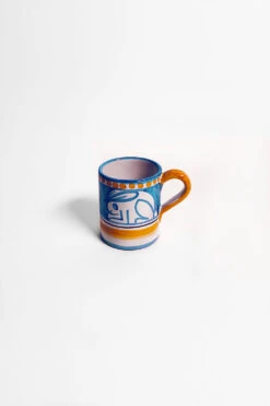 Mug en céramique avec motifs Lapin. Chaque pièce unique est fabriquée par des artisans italiens et décorée au pinceau sur la base de tons aquarellés et de thèmes bestiaires porte-bonheur.