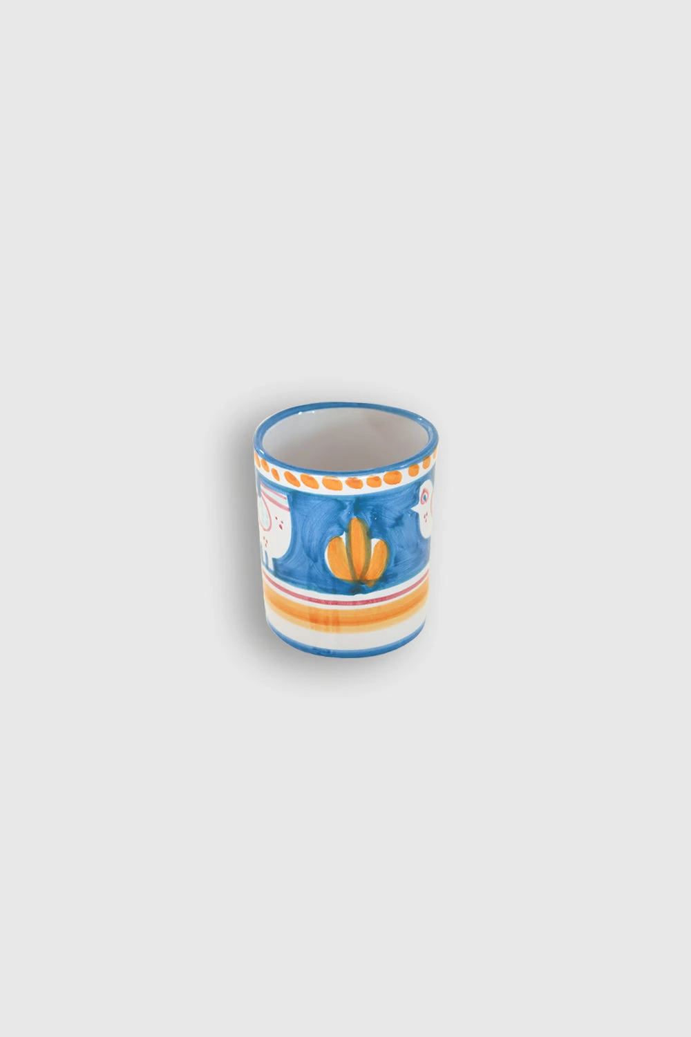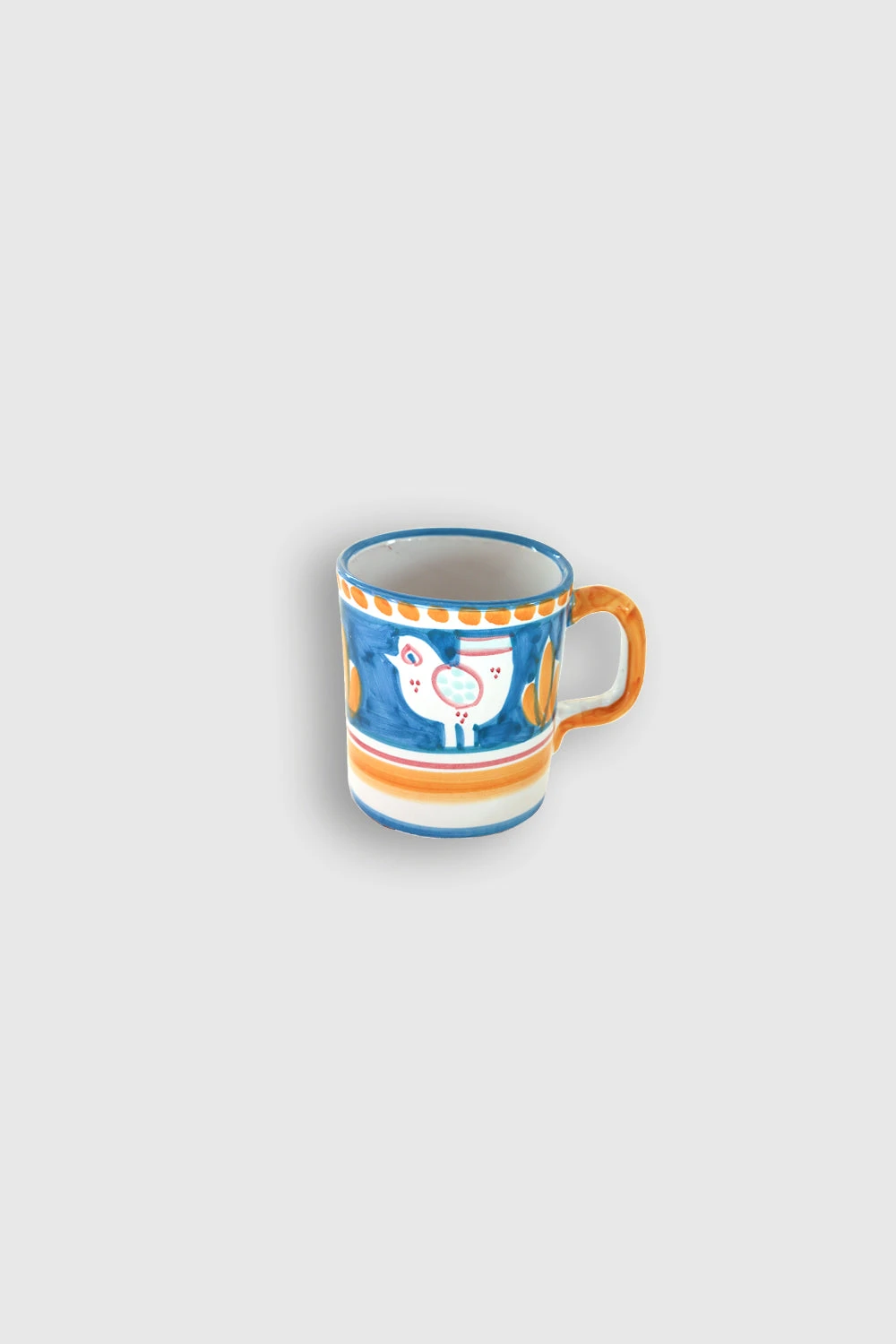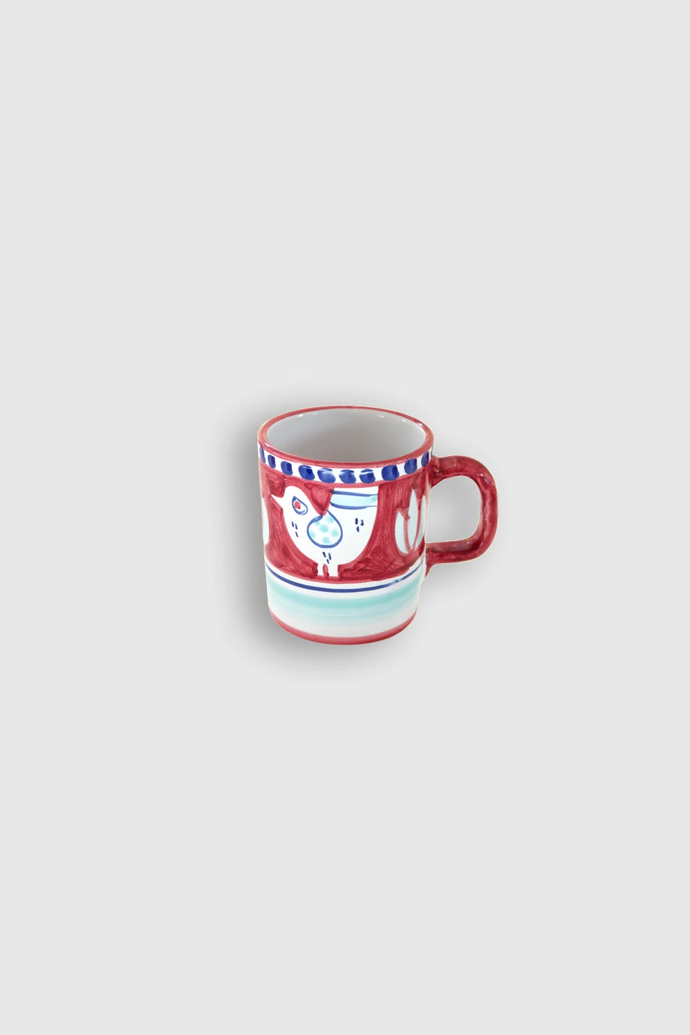 Mug en céramique avec motifs Poules. Chaque pièce unique est fabriquée par des artisans italiens et décorée au pinceau sur la base de tons aquarellés et de thèmes bestiaires porte-bonheur.