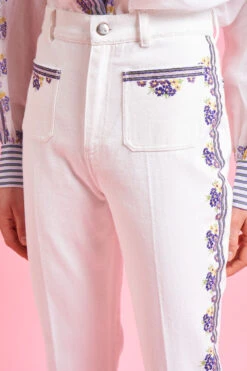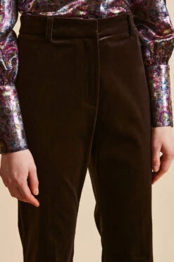 Succombez pour le pantalon droit en laine vierge italienne PETISOLDA. Il est doté d’une paire de poches sur le côté, d’un pli repassé, d’une paire de poches paysannes au dos, et d’une fente boutonnée de 3 boutons fantaisies “moutons” au niveau de la cheville.