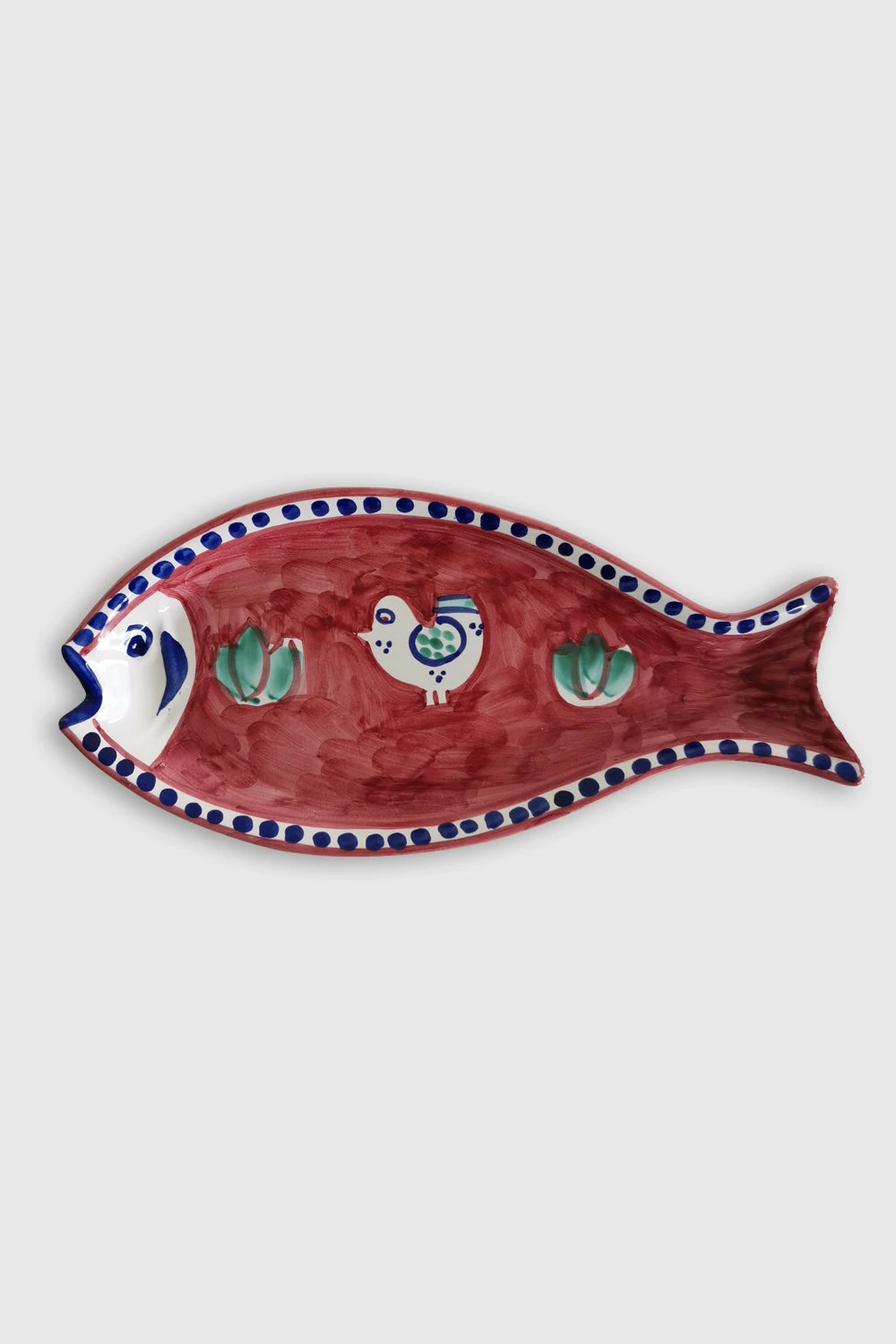 Plat à poisson en céramique avec motif Poule. Chaque pièce unique de céramique est fabriquée par des artisans italiens à Positano et décorée au pinceau sur la base de tons aquarellés et de thèmes bestiaires porte-bonheur.