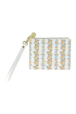 Porte cartes en imitation cuir avec zip doré à l’imprimé fleuri. Empiècement externe en transparence par une découpe en forme de tête de chat.