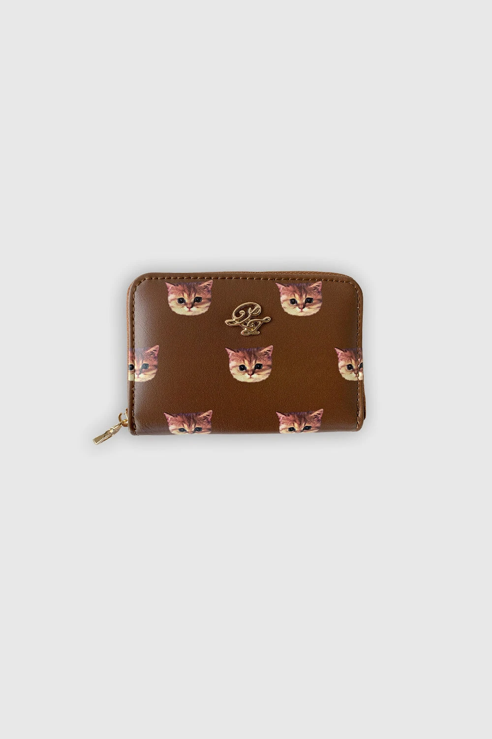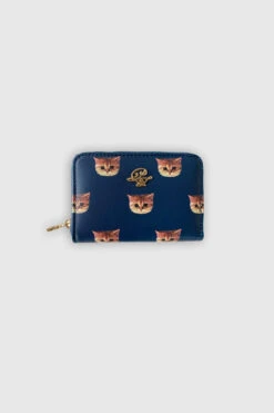 Porte-monnaie zippé à imprimé chat.