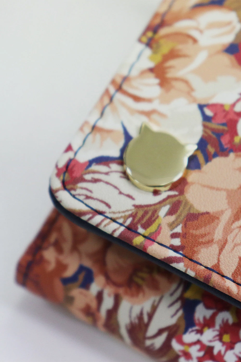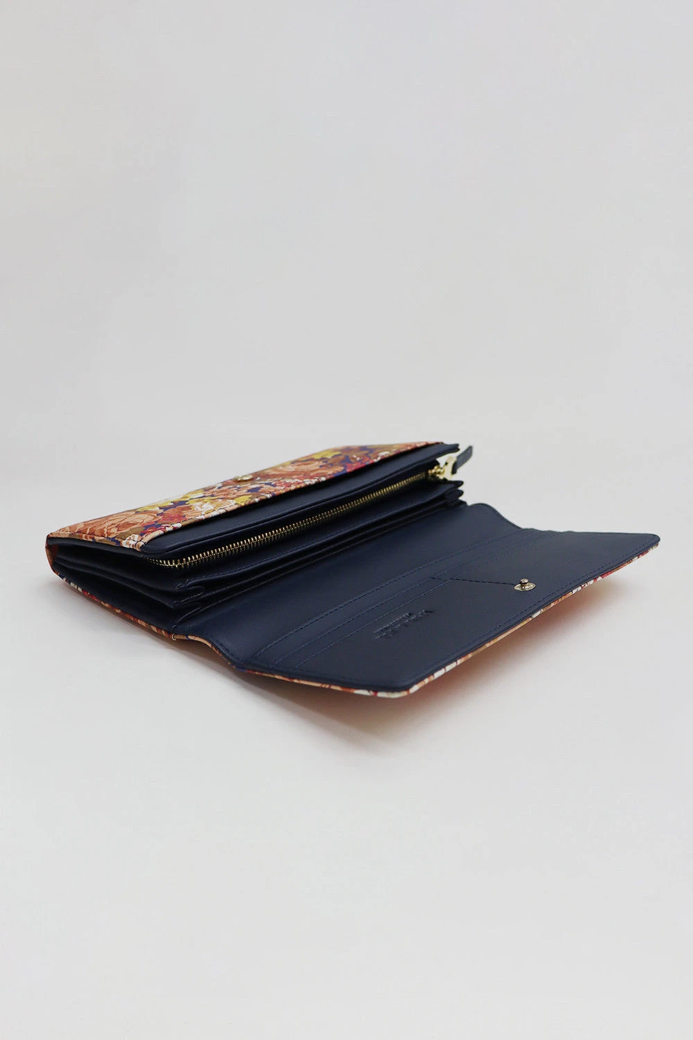Portefeuille en imitation cuir avec motif fleuri, emblématique de la maison. Plusieurs compartiments carte et monnaie.