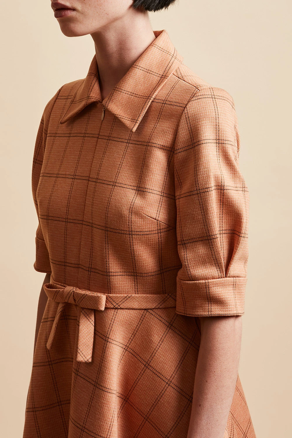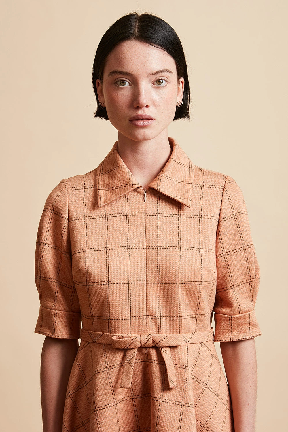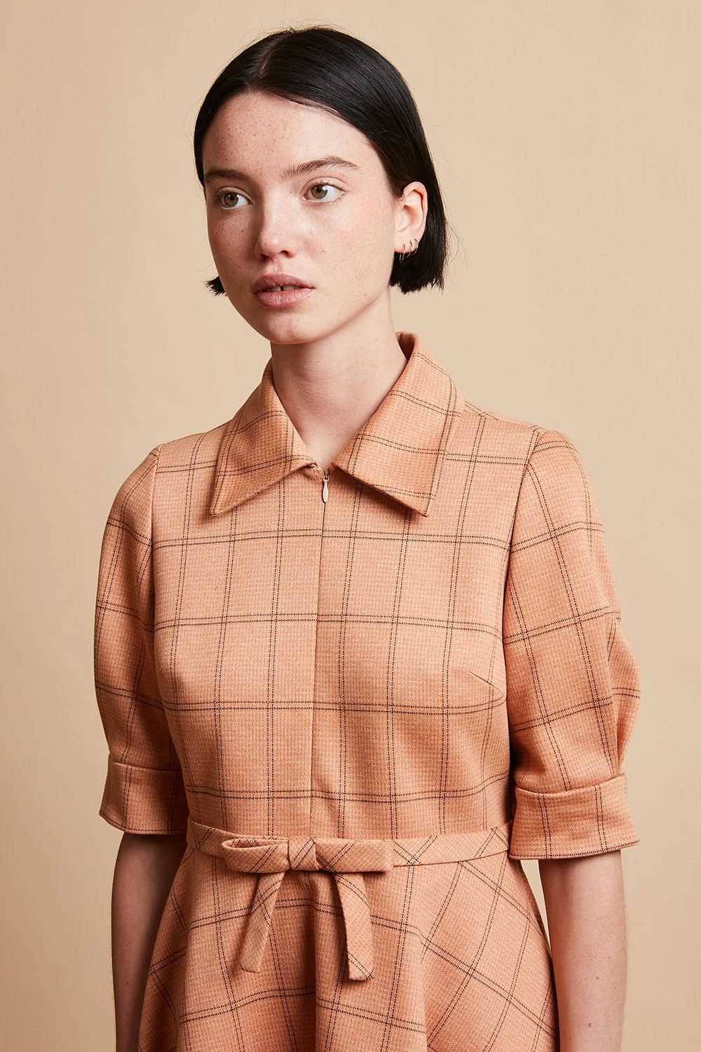 Osez l’imprimé jacquard avec la robe courte à godets IRINA. Elle dispose d’un zip invisible à l’avant et de manches longueur coude avec plis creux au dessus du poignet. La robe est doublée et la taille marquée par une ceinture ornée d’un noeud plat incrusté.