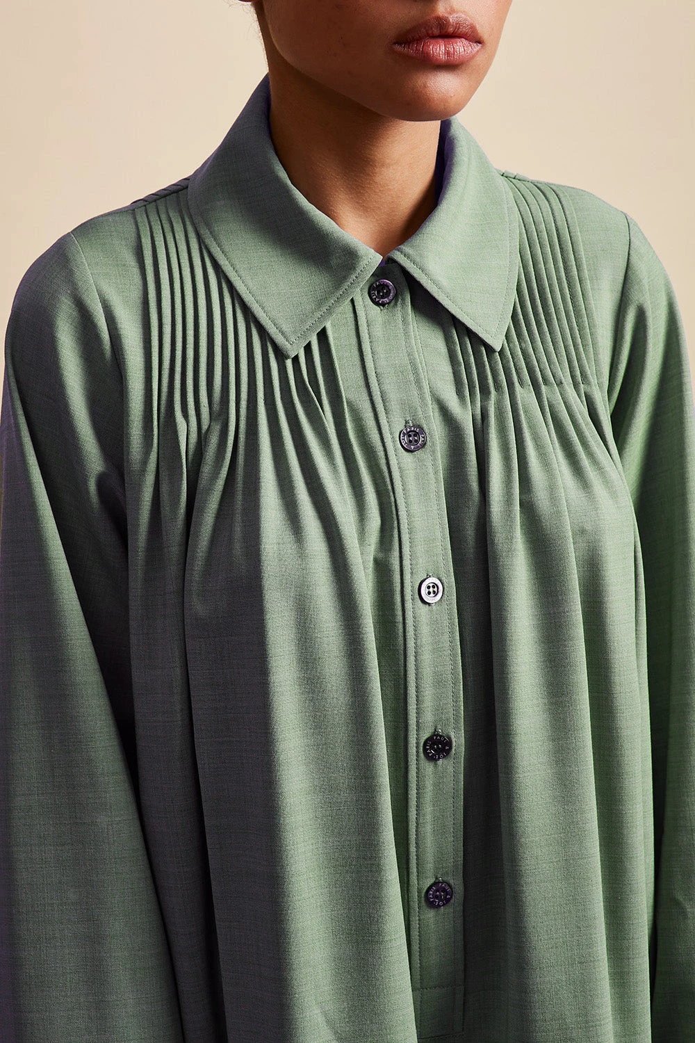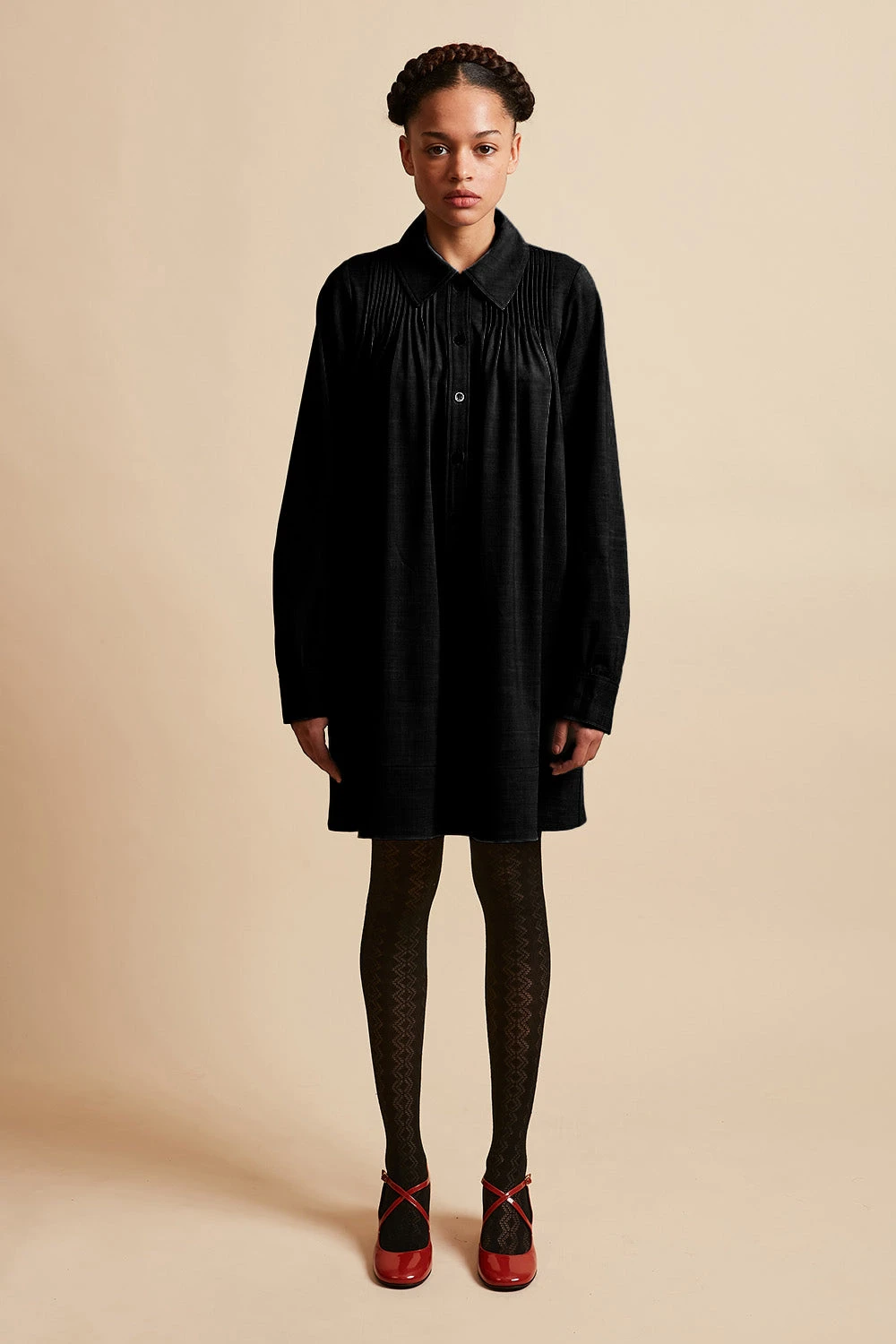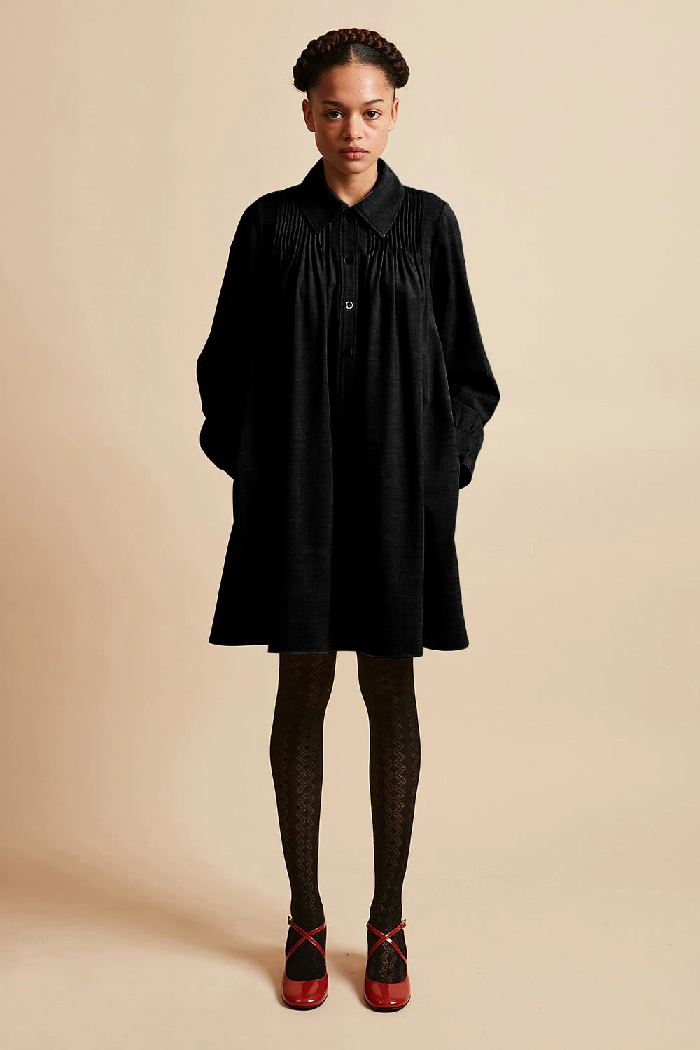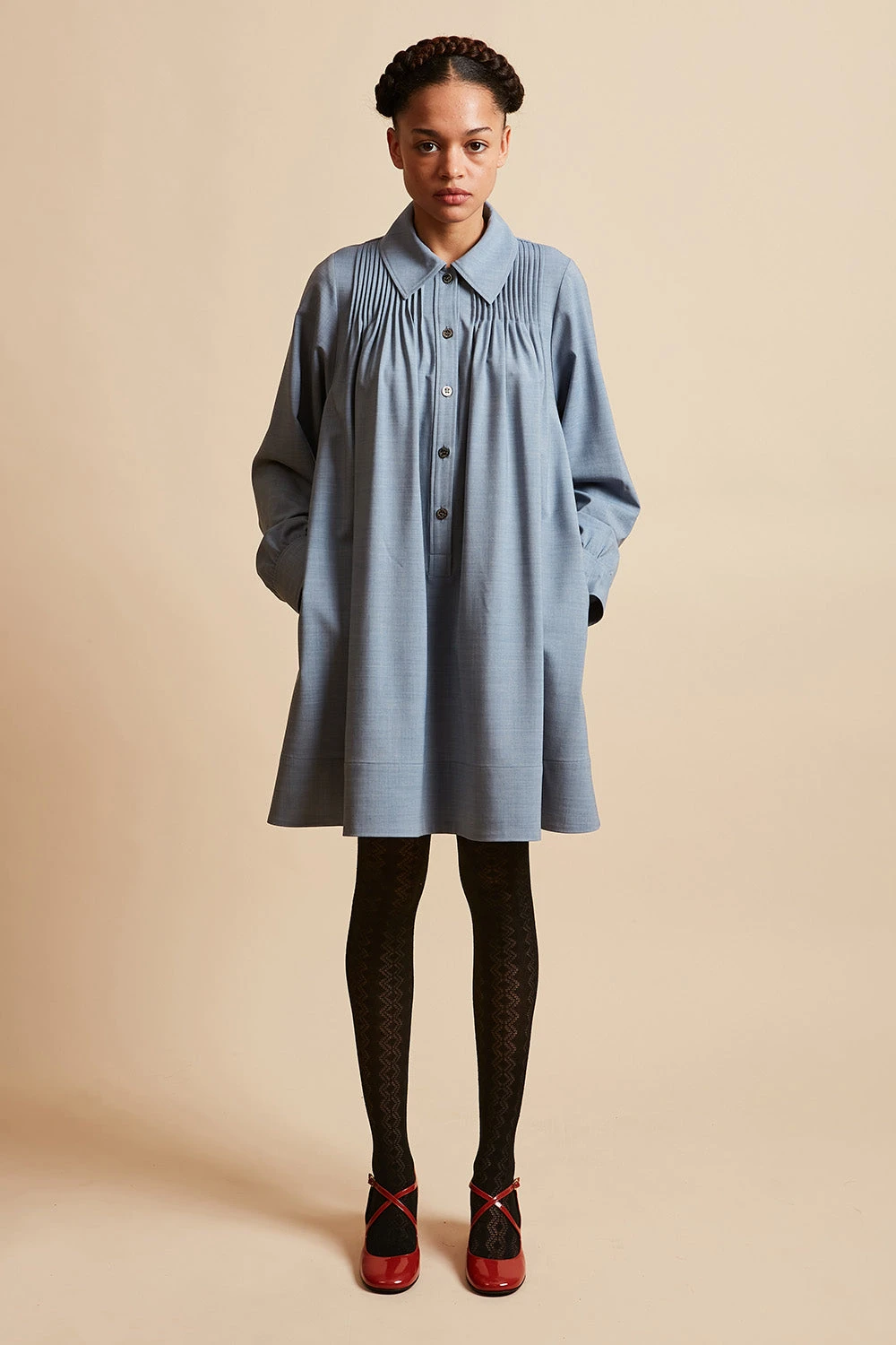 Complétez votre garde robe avec la robe courte ample LENFANCE en laine vierge tropicale. Tissée en Italie, elle est ajustée aux épaules et dispose d’un jeu de plis piqués au devant et au dos. Elle est également dotée d’une patte polo boutonnée, d’un col chemise et de manches longues avec poignets boutonnés. Des poches dans les coutures côtées sont présentes.