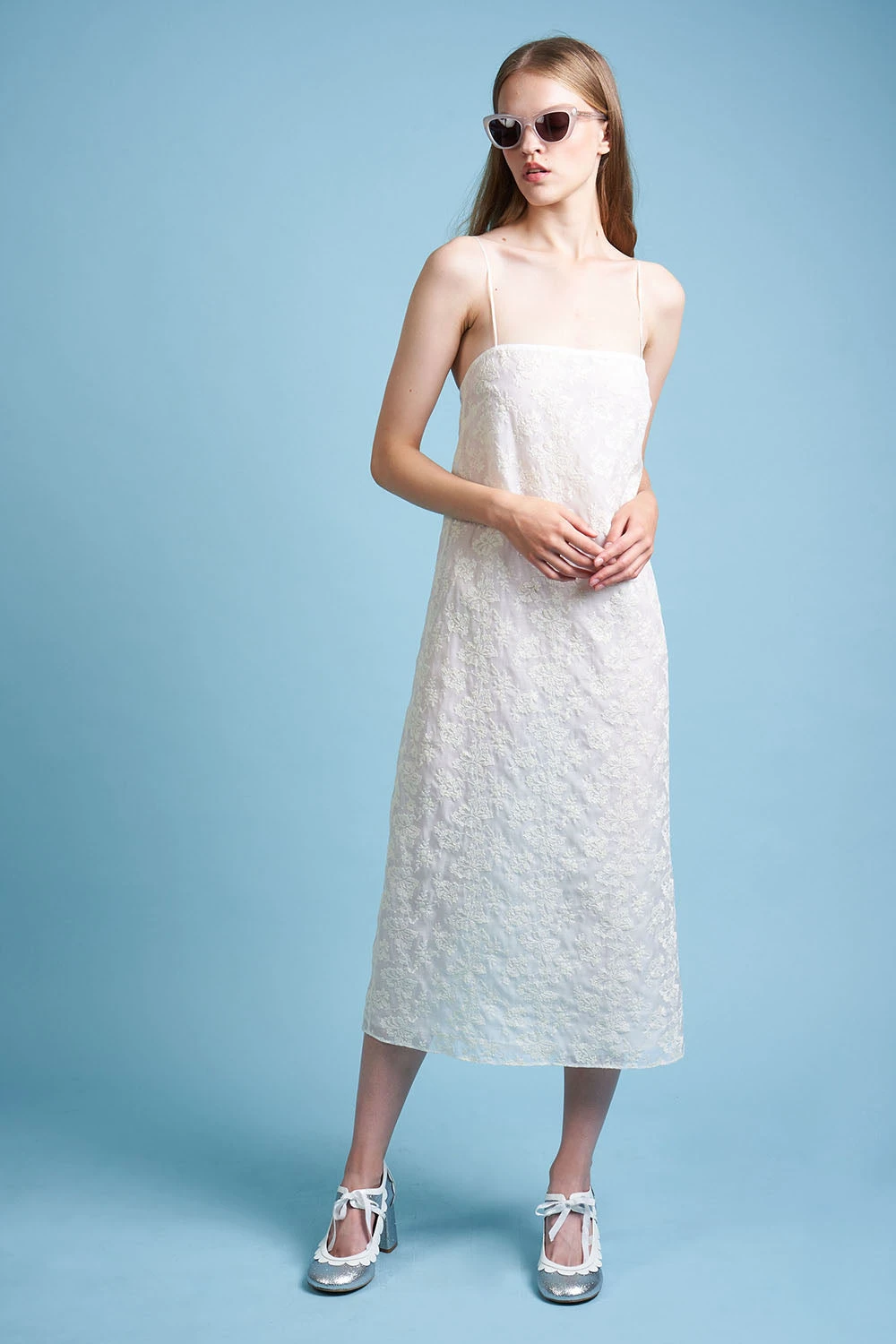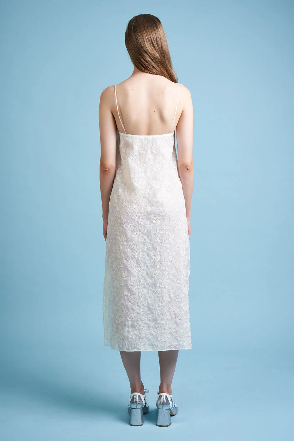 - La pureté de la ligne met à l’honneur l’organdi de coton brodé d’un motif floral