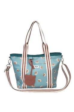 Adorable sac type cabas en tissu à l’imprimé Nounette, l’un des chats de note créatrice Sophie Mechaly. Pratique, il se porte avec des anses ou sa bandoulière amovible ajustable. Il possède également un miroir de poche recouvert d’une bande de cuir à la forme chat !