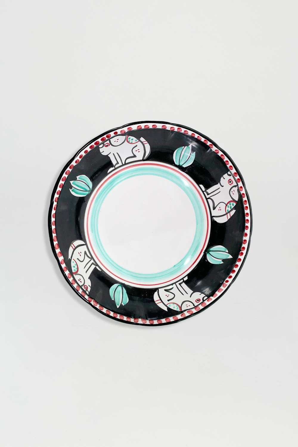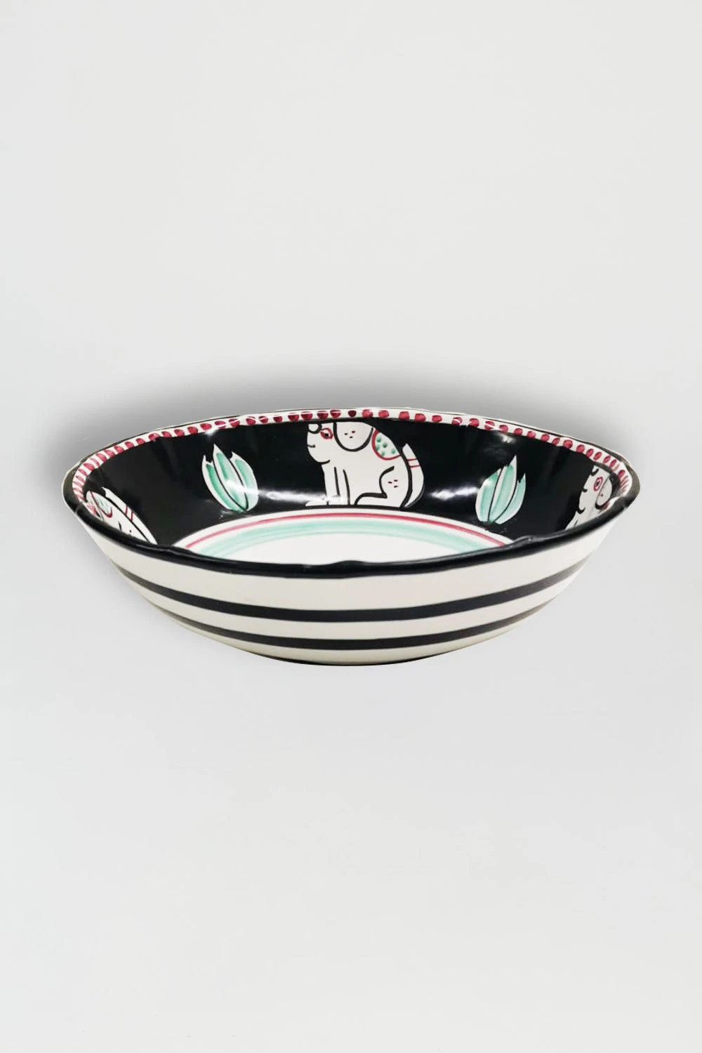Saladier en céramique avec motifs Chiens. Chaque pièce unique est fabriquée par des artisans italiens et décorée au pinceau sur la base de tons aquarellés et de thèmes bestiaires porte-bonheur.