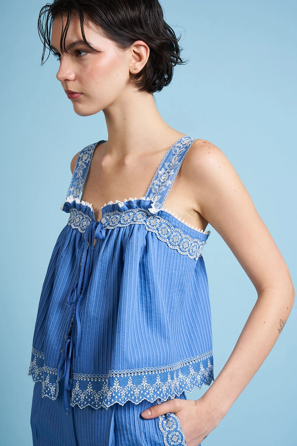 - Orné de galon en dentelle française