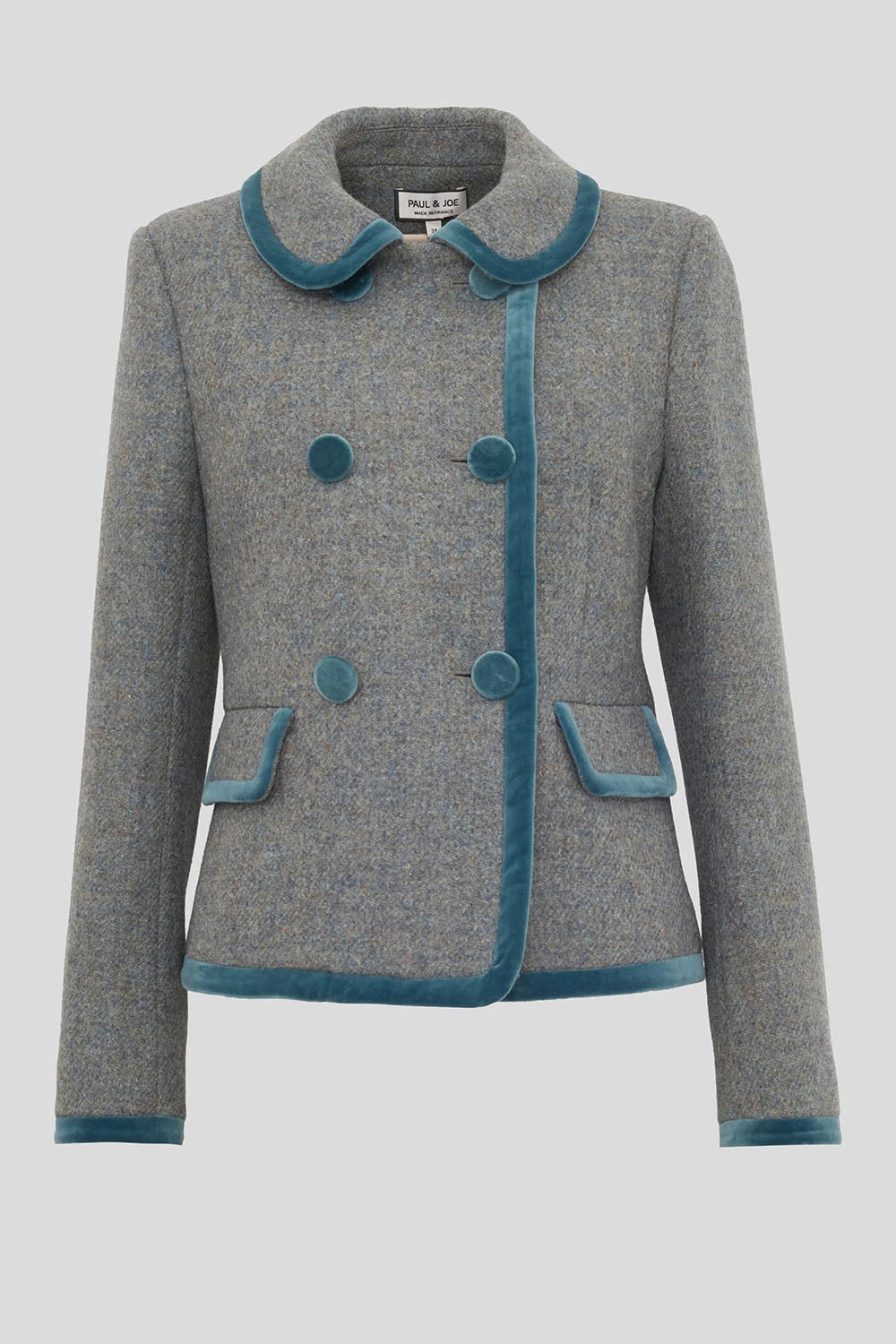 Succombez pour la veste courte ajustée en tweed de laine vierge harris tweed DOMITILLE. Elle est dotée d’une fermeture avant croisée, d’un boutonnage apparent, d’un bouton semi-bombé recouvert de velours de coton. Le liseré sur le col et le contour des rabats des poches sont en velours. Le col est en demi-lune.