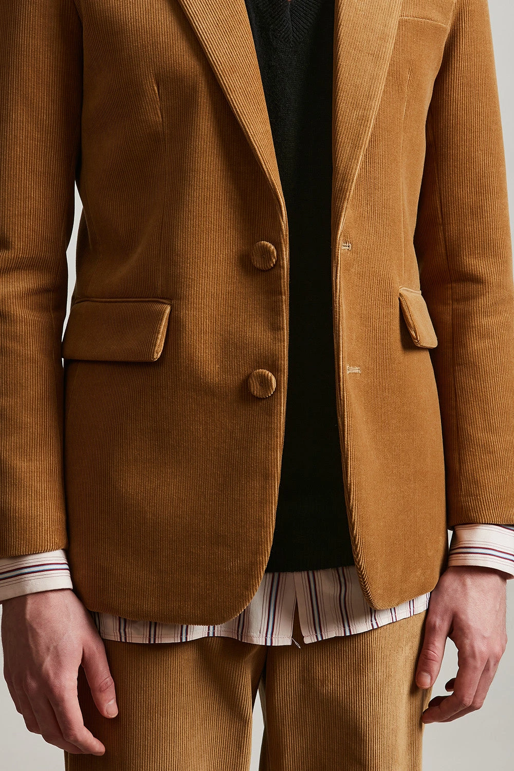 Complétez votre dressing avec la veste tailleur en velours côtelé de coton VIAN. Elle dispose d’un col tailleur classique et d’un simple boutonnage avec boutons yvettes recouverts de tissu. Elle est dotée d’une paire de poches à l’avant, d’une poche gilet incrustée sur la poitrine au côté gauche et d’une poche intérieure à double passepoil cocotte.