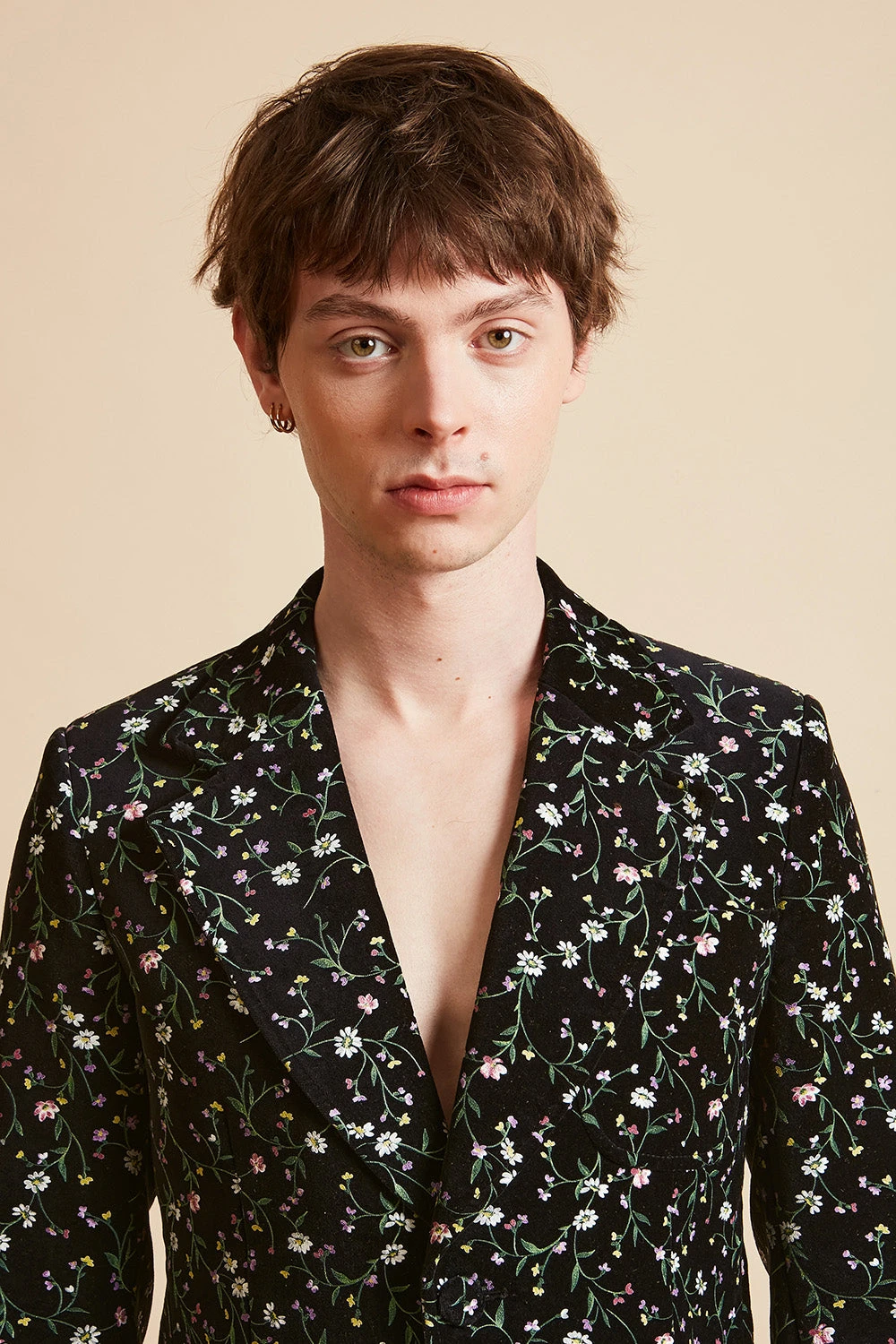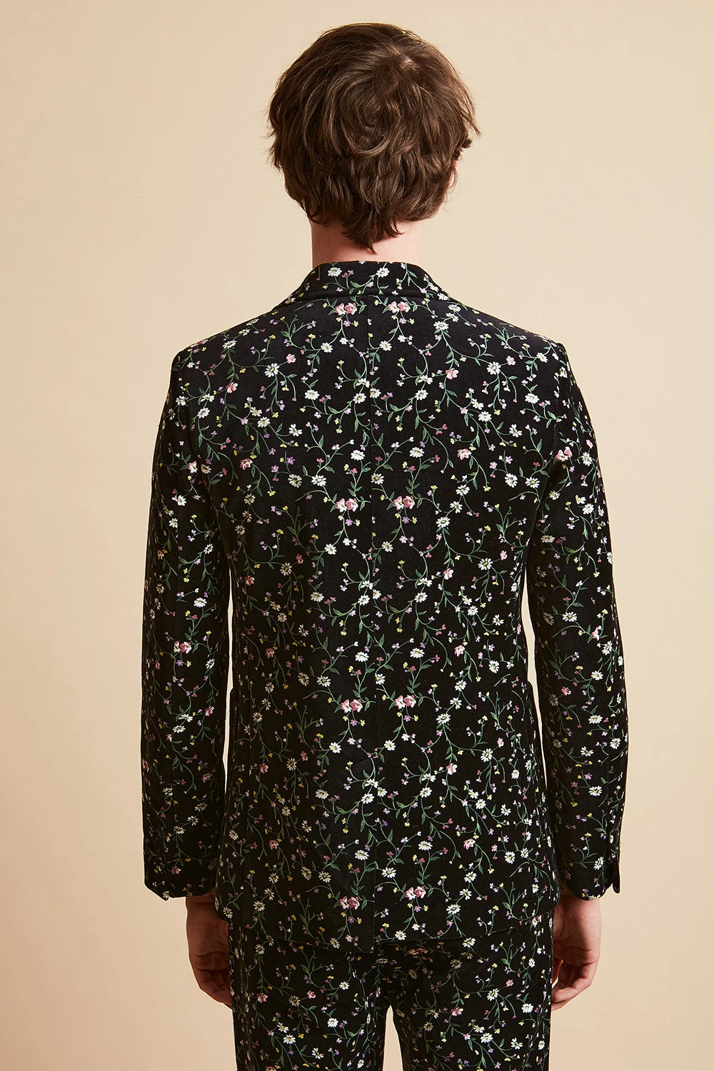 Succombez au motif floral avec la veste de tailleur en velours de coton imprimé au pigment MATTEO. De coupe ajustée, elle dispose d’un col tailleur simple, d’une paire de poches plaquées au devant, d’une poche plaquée sur la poitrine et d’une poche intérieure à double passepoil. Elle est également dotée d’une fente au milieu du dos et d’un simple boutonnage avec deux boutons yvette recouverts de tissus.